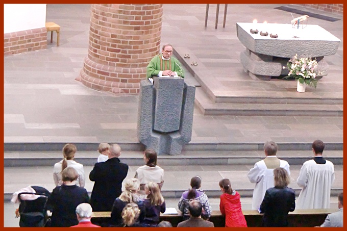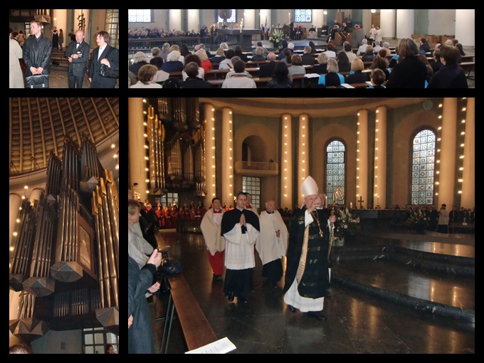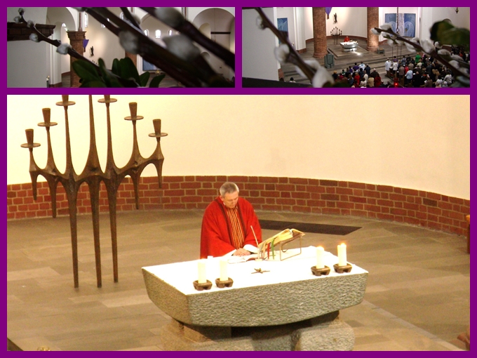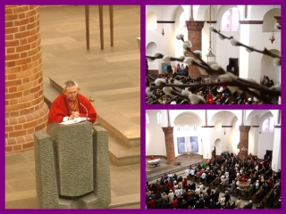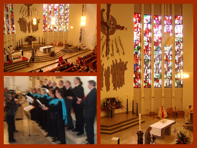 Te najwa¿niejsze wydarzenia w roku liturgicznym Ko¶cio³a, wznios³e, przepiêkne i radosne ceromonie upamiêtniaj±ce Mêkê, ¦mieræ i Zmartwychwstanie Chrystusa wielu polskich parafian ¶wiêtowa³o wspólnie z parafi± niemieck±. Wierni, dla których dojazd do Bazyliki ¶w. Jana jest zbyt odleg³y, skorzystali z zaproszenia niemieckich gospodarzy i razem z nimi brali udzia³ w ceremoniach Wielkiego Tygodnia. Zapalony pascha³, a od niego ¶wiece wiernych i s³owa kap³ana „Lumen Christi” to wymowny znak naszej wiary. Wspólny ¶piew u¶wietniali tak¿e cz³onkowie Chóru Auxilium.