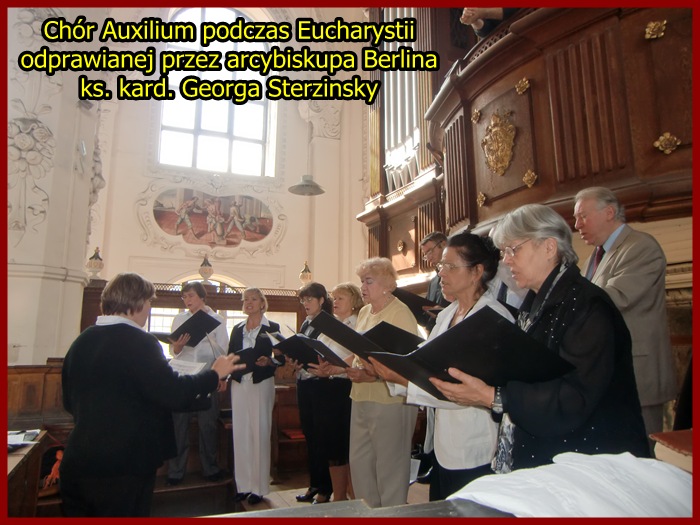 W dzieñ po 51 rocznicy ¶wiêceñ kap³añskich, 30 czerwca 2011 roku nad ranem, zmar³ ks. kardyna³ Georg Maximilian Sterzinsky, arcybiskup Berlina. Urodzony w 1936 roku pod Olsztynem i po wojnie zmuszony do wyjazdu z Warmii osiad³ w NRD. W maju 1989 r. zosta³ mianowany biskupem Berlina, w 1991 r. kardyna³em, a w 1994 r. arcybiskupem. Ks. Kardyna³ Sterzinsky czêsto zaprasza³ Chór Auxilium do wystêpów w katedrze ¶w. Jadwigi, do prowadzenia ¶piewu w czasie biskupich spotkañ katolików ró¿nych narodowo¶ci. Zawsze znajdowa³ czas na rozmowy z chórzystami, tak¿e w swojej skromnej rezydencji. Requiescat in pace!