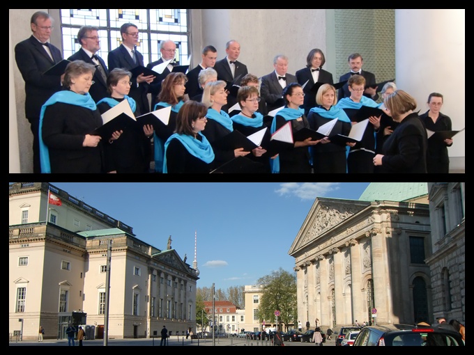 10 wrze¶nia w Rosenkranz-Basilika (Steglitz), a 17 wrze¶nia w St. Marien (Reinickendorf) odby³y siê próby generalne po³±czonych chórów przed Msz± ¶w. odprawian± przez Ojca ¶w. Benedykta XVI na Stadionie Olimpijskim. Kilkugodzinne próby by³y bardzo uci±¿liwe, pozwala³y jednak ju¿ wyobraziæ sobie potêgê ¶piewu i niezwyk³o¶æ oprawy muzycznej uroczysto¶ci. W¶ród licznych chórów Archidiecezji chór Polskiej Misji Katolickiej w Berlinie stanowi jeden z najliczniejszych zespo³ów.