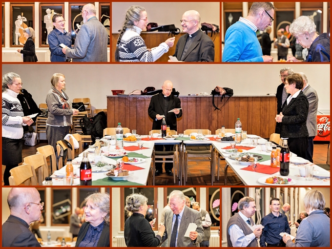 Ks. Proboszcz Marek Kêdzierski podkre¶li³, ¿e warto¶ci± Wieczoru Kolêdowego by³o nie tylko wspania³e wykonanie muzyczne, ale przede wszystkim przekazanie g³ebokiej tre¶ci religijnej i piêkna polskich kolêd. S³uchanie i ¶piewanie kolêd jest modleniem siê do Boga, który sta³ siê cz³owiekiem. W¶ród zebranych w ko¶ciele aplauz wywo³a³o wspólne wykonanie przez ¶piewaków na przemian po polsku i po niemiecku kolêdy Przybie¿eli do Betlejem. Po koncercie go¶cie i wykonawcy wraz z Ksiêdzem Proboszczem spotkali siê na tradycyjnej wieczerzy, któr± przygotowali chórzy¶ci. Przyjacielskie spotkanie przebiega³o w radosnej atmosferze, tym bardziej, ¿e w gronie zebranych znalaz³y siê dwie solenizantki - Agnieszka Siewiec i Agnieszka Wi¶niowska-Kirch.